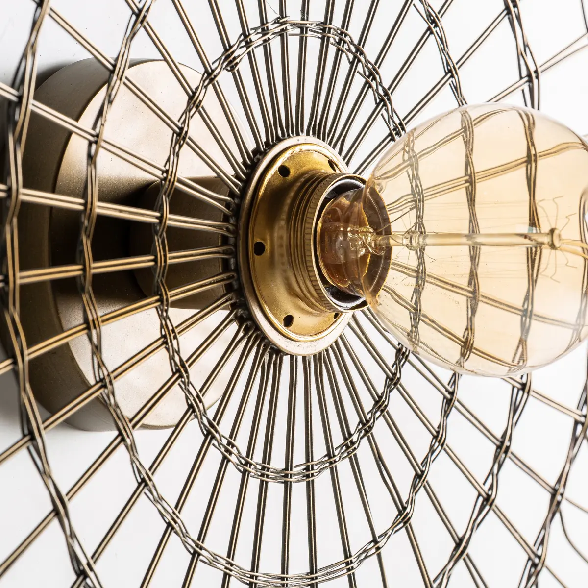 Lampe de mur ronde, couleur doré, style industrielle. Fabriqué en fer.