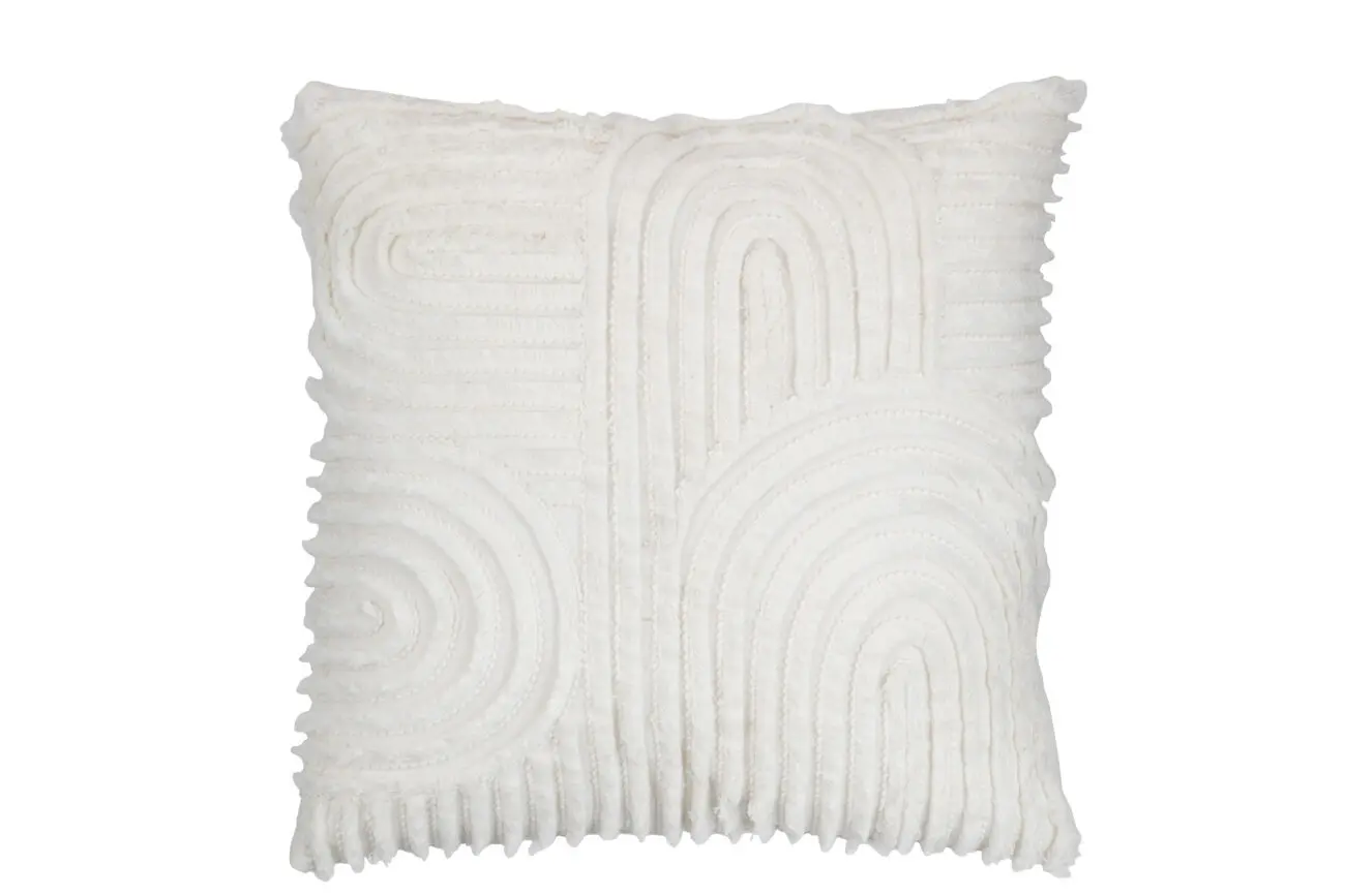Coussin carré en polyester blanc avec arcs en relief ARKOS