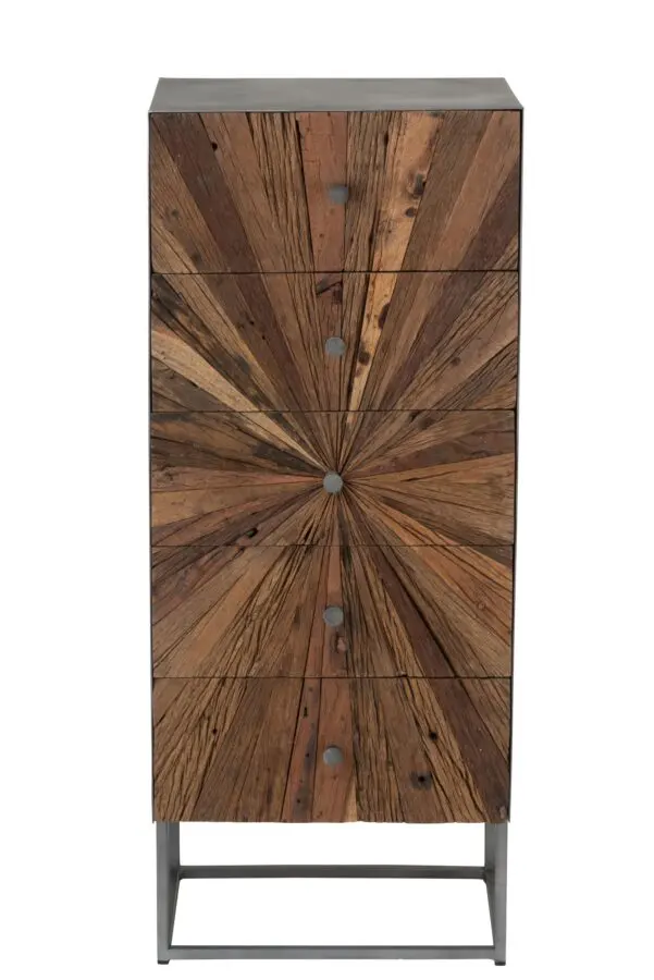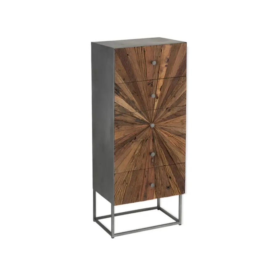 Commode haute Shanil – Métal/bois massif- Naturel/gris