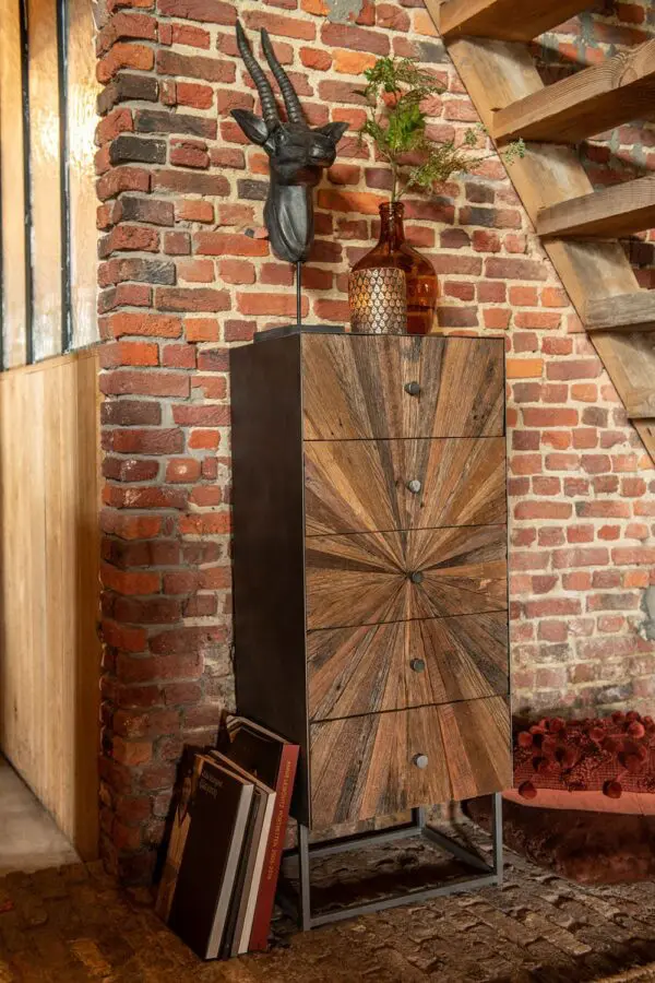 Commode haute en bois de manguier et métal H110
