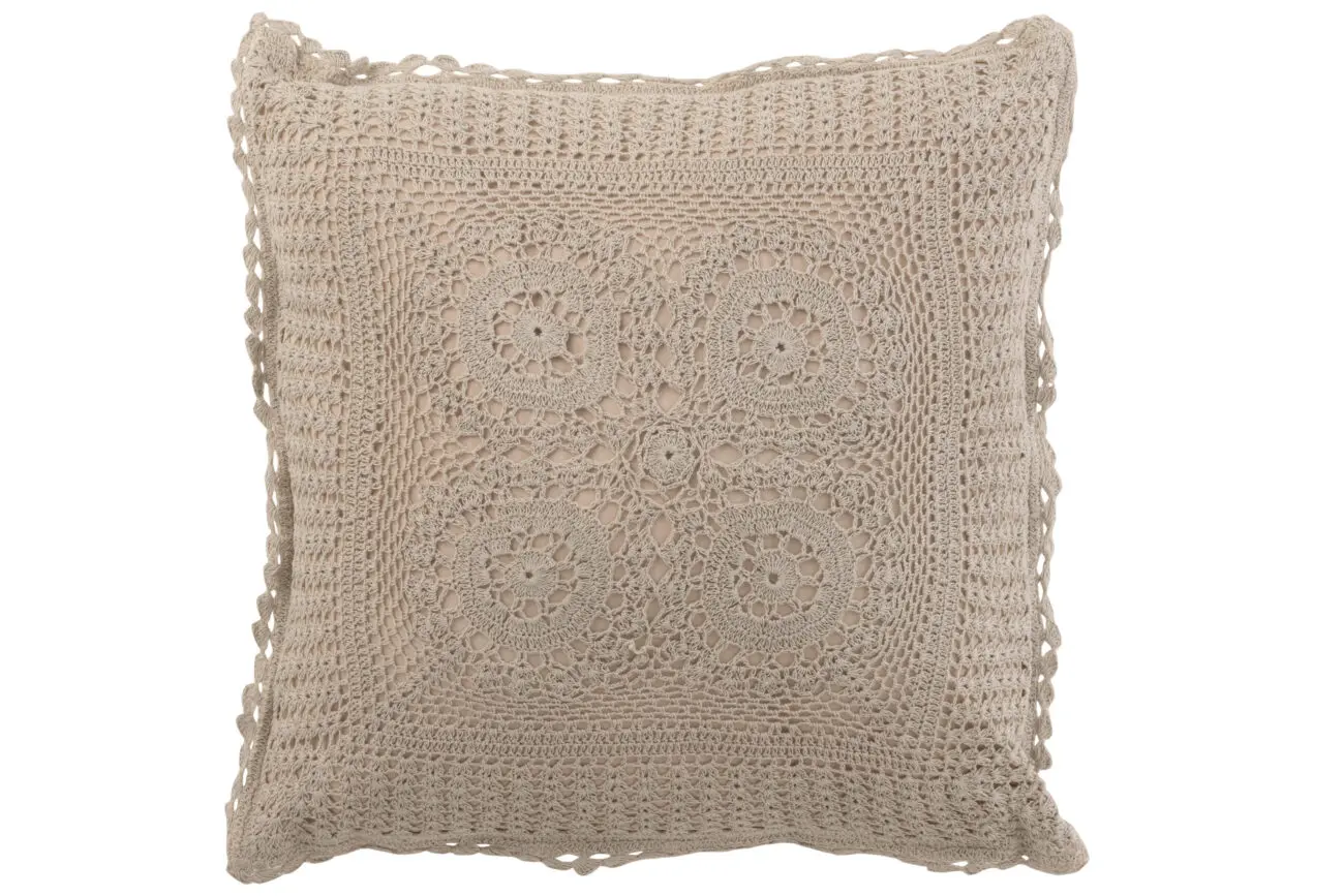 Coussin dentelles carré en coton taupe BANO