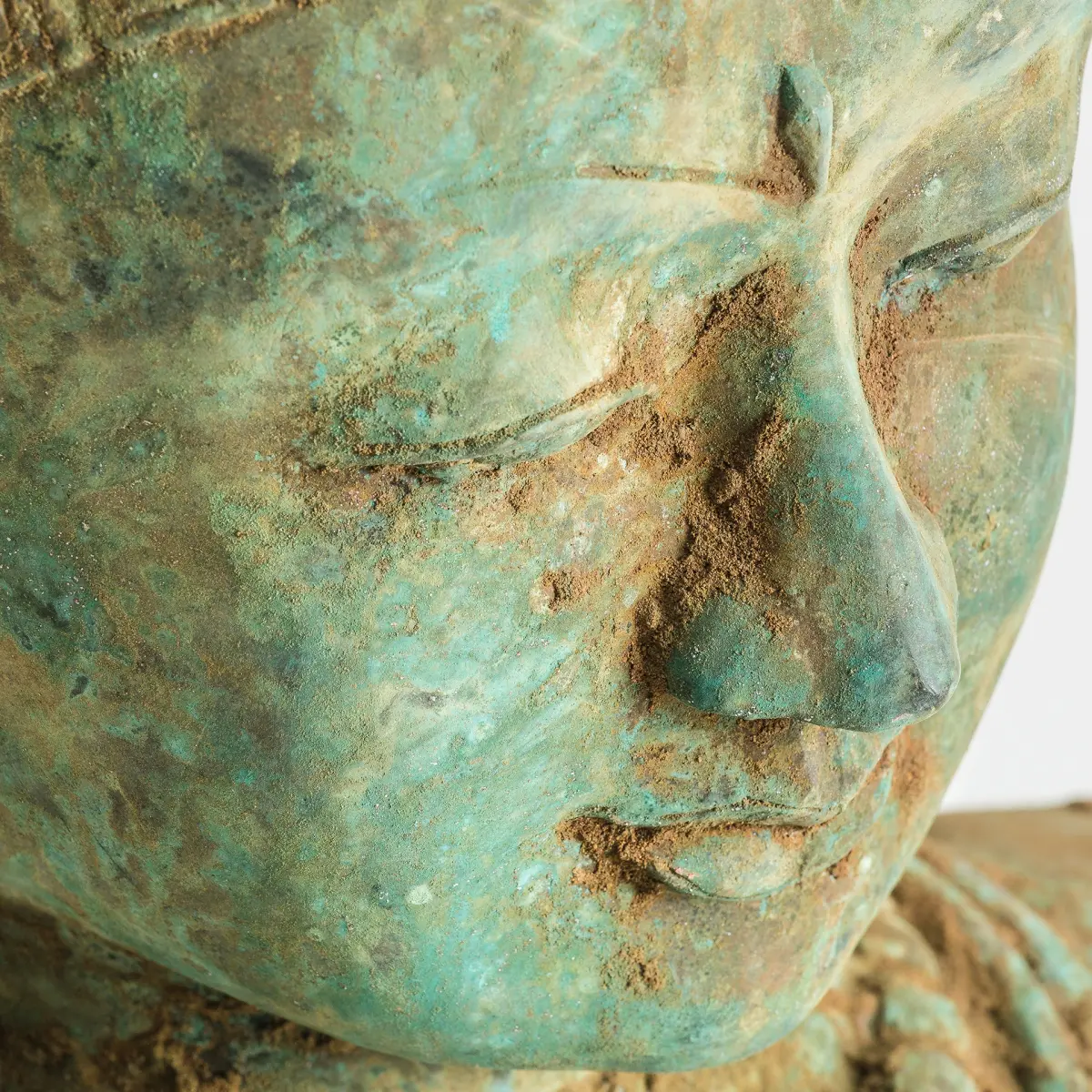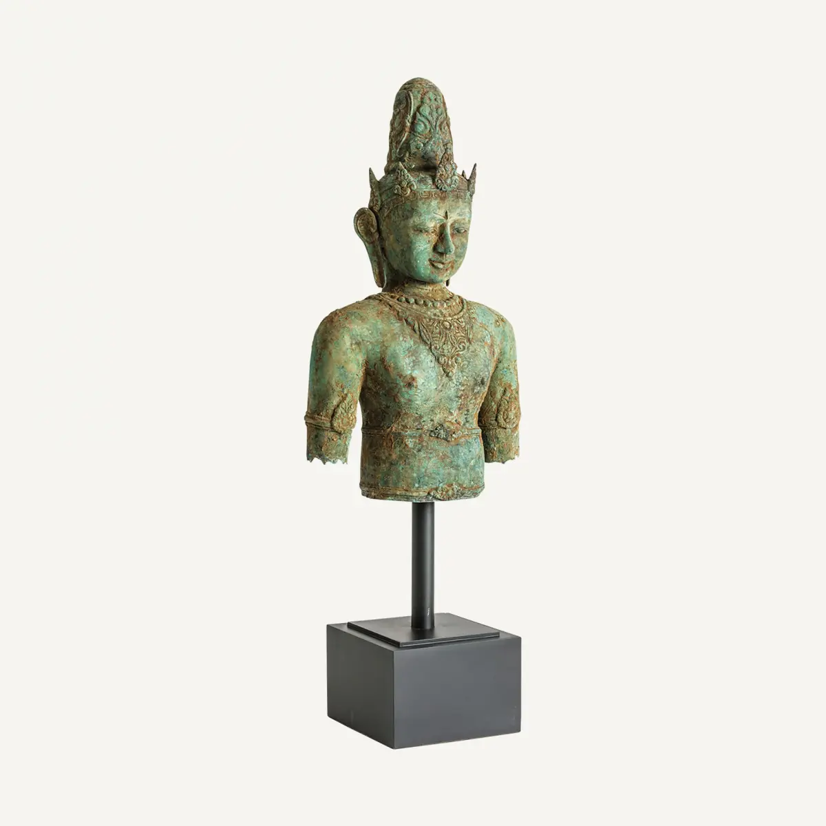 Buste Balinesa Vical Home 125cm, couleur nuances vertes vieilli, style oriental. Fabriqué en bronze, combiné avec fer.