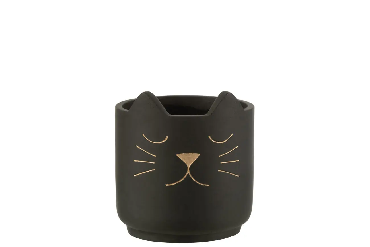CACHEPOT CHAT CERAMIQUE NOIR/OR MEDIUM