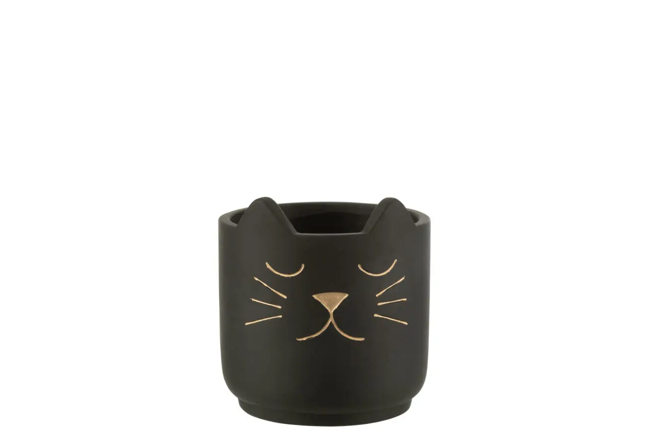 CACHEPOT CHAT CERAMIQUE NOIR/OR SMALL