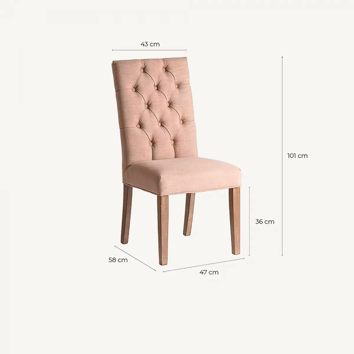 Chaise capitonnée isere Vical Home, couleur ocre, style provençal. Fabriqué en dm, combiné avec coton et bois d´hévéa.