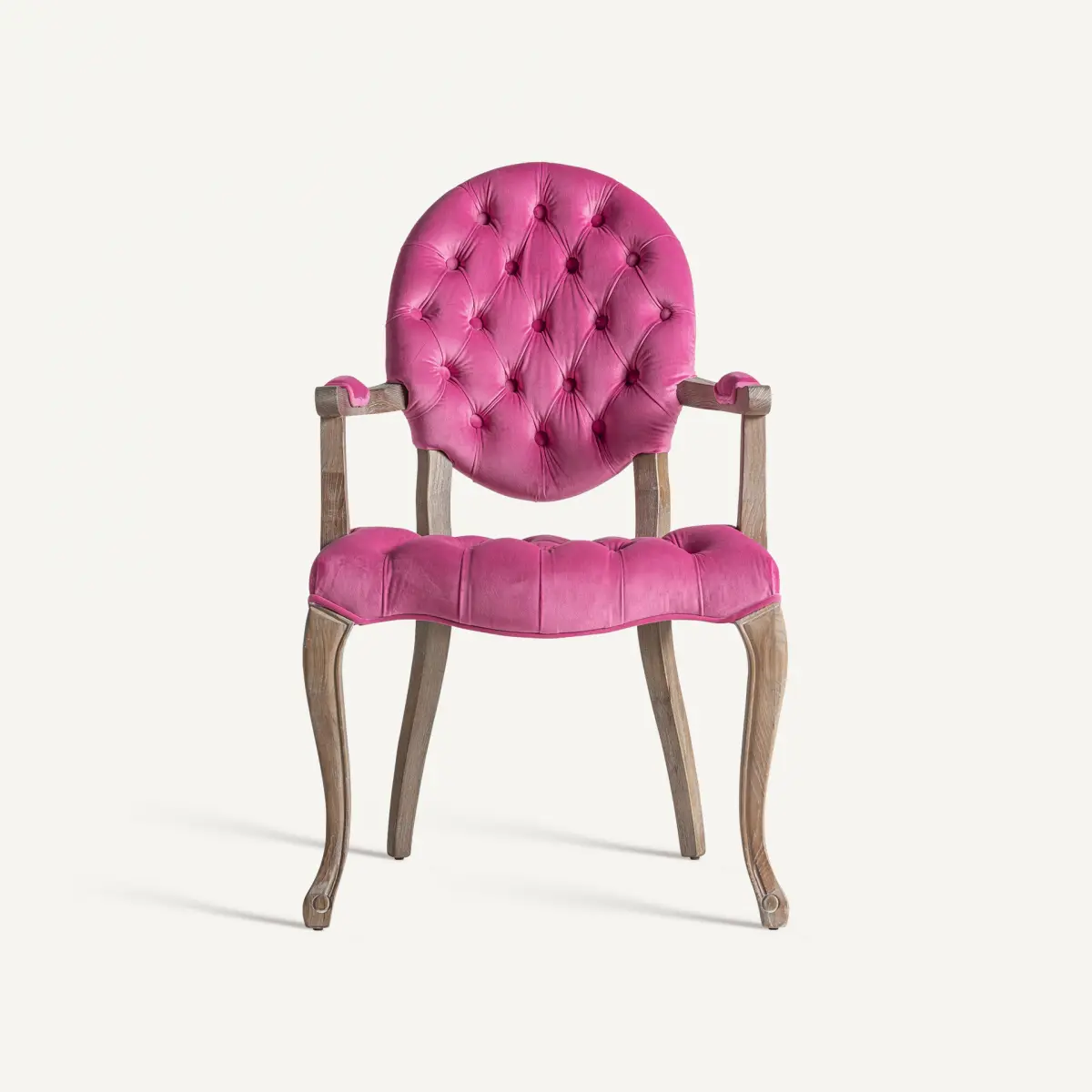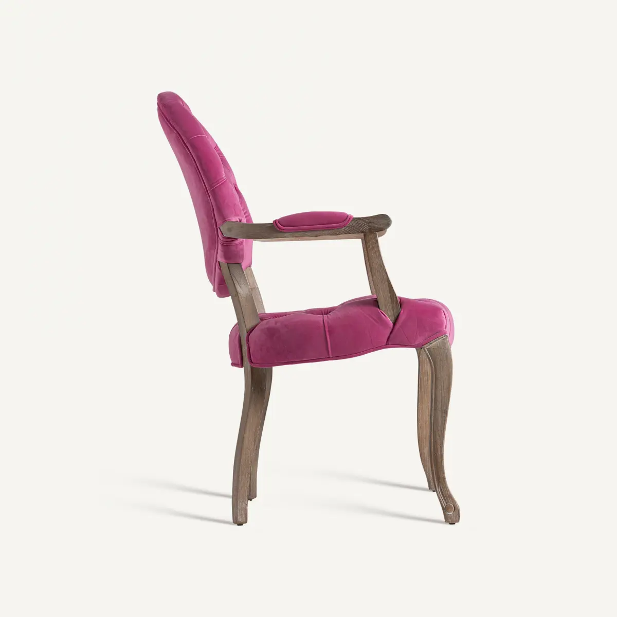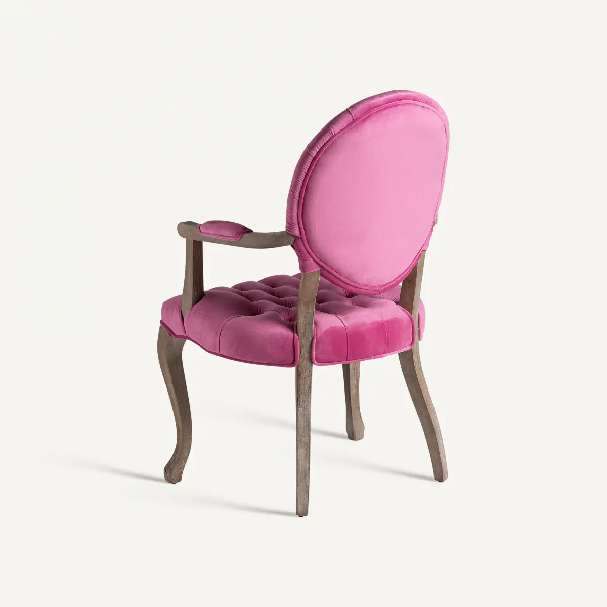 Chaise jena Vical Home, couleur rose, style provençal. Fabriqué en bois de sapin, combiné avec velours et mousse.