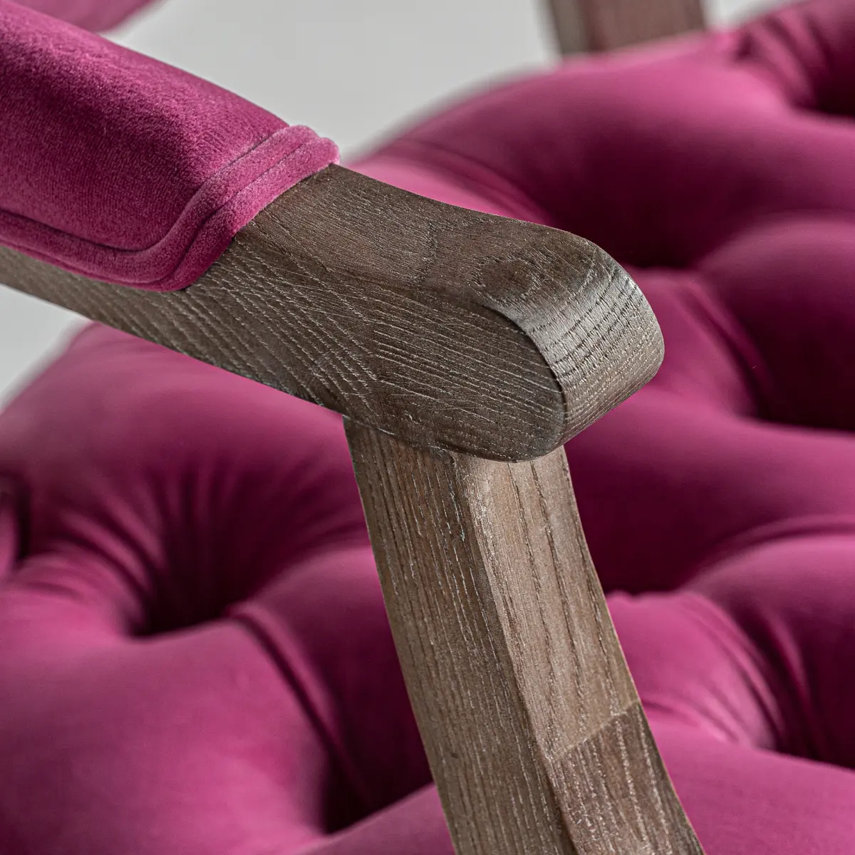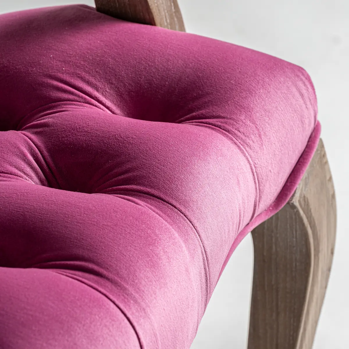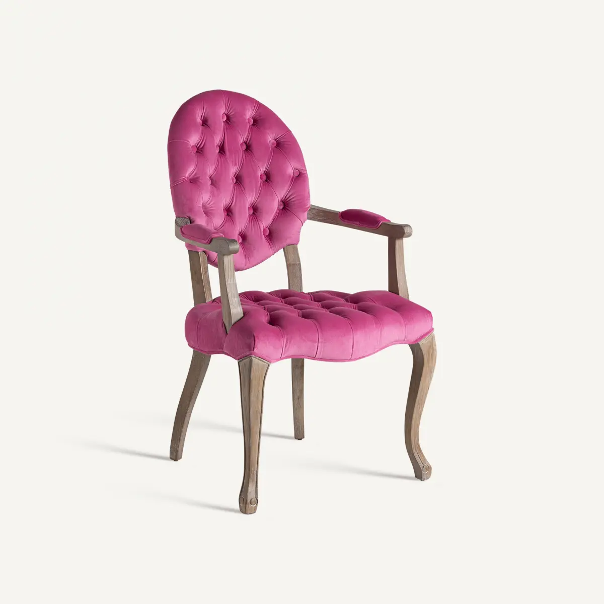 Chaise jena Vical Home, couleur rose, style provençal. Fabriqué en bois de sapin, combiné avec velours et mousse.