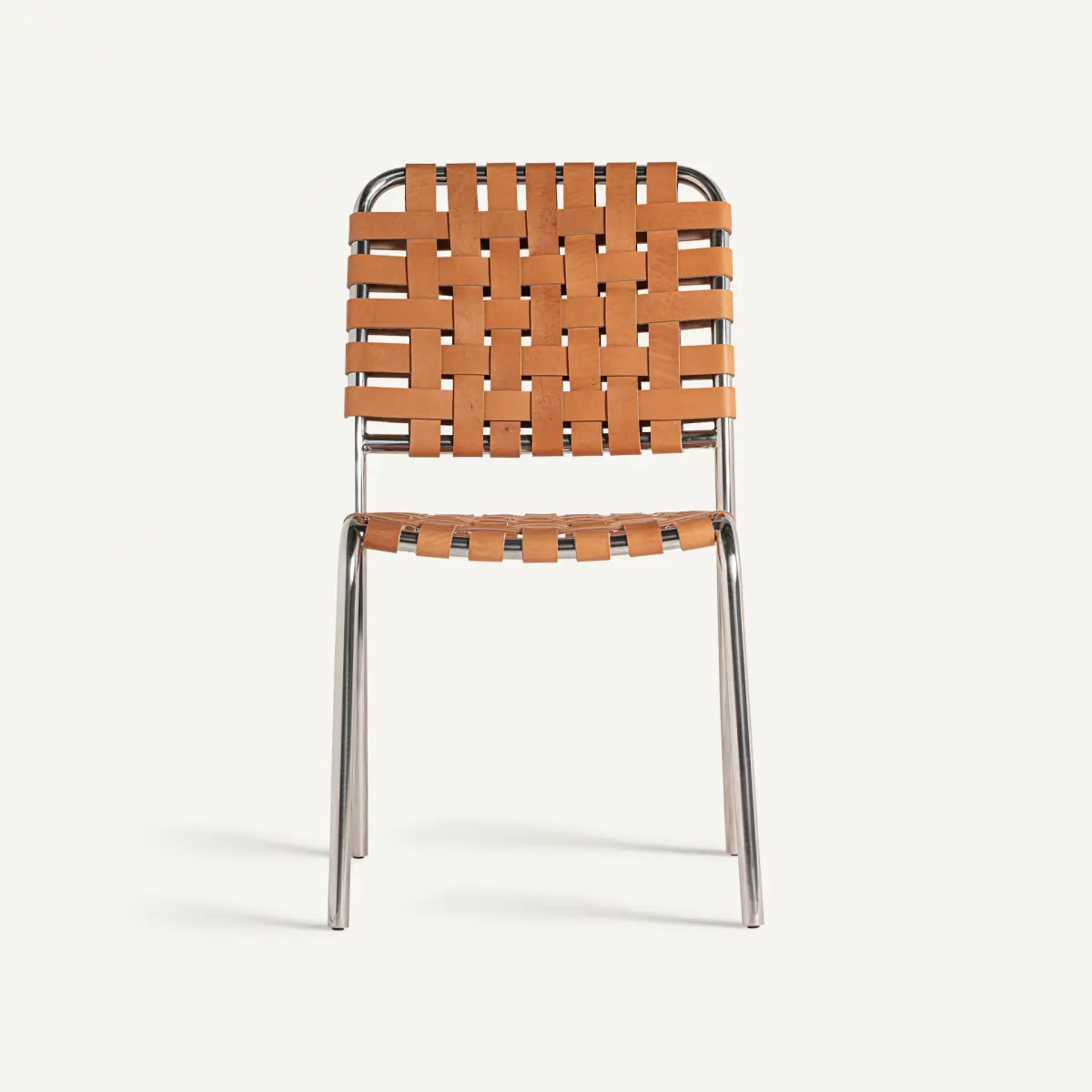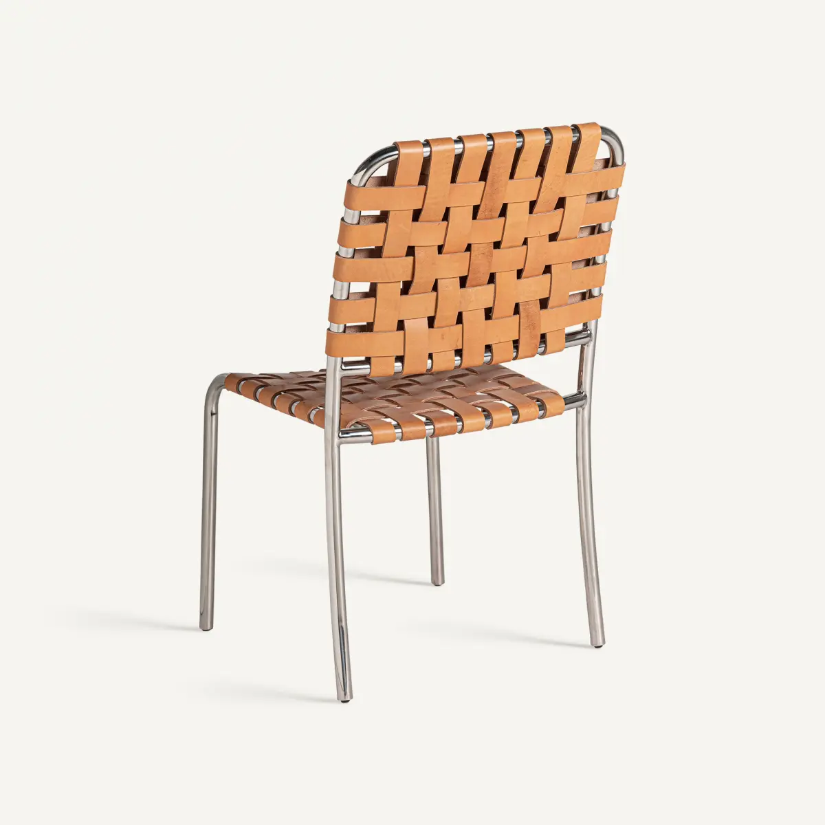 Chaise kinloss Vical Home, couleur marron/argent, style contemporain. Fabriqué en acier, combiné avec peau.