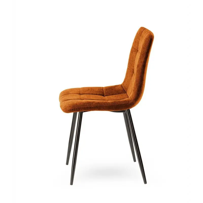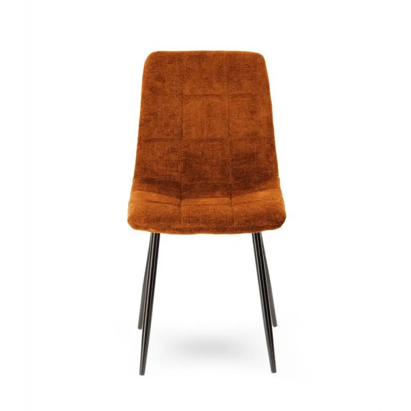 Avec son armature en métal garnie de mousse et bien large, cette chaise possède une assise moelleuse et douillette. Elle repose sur quatre pieds fuselés en fer noir pour une excellente stabilité et son assise et dossier sont recouverts d’un tissu cognac pour un style plein d’élégance.