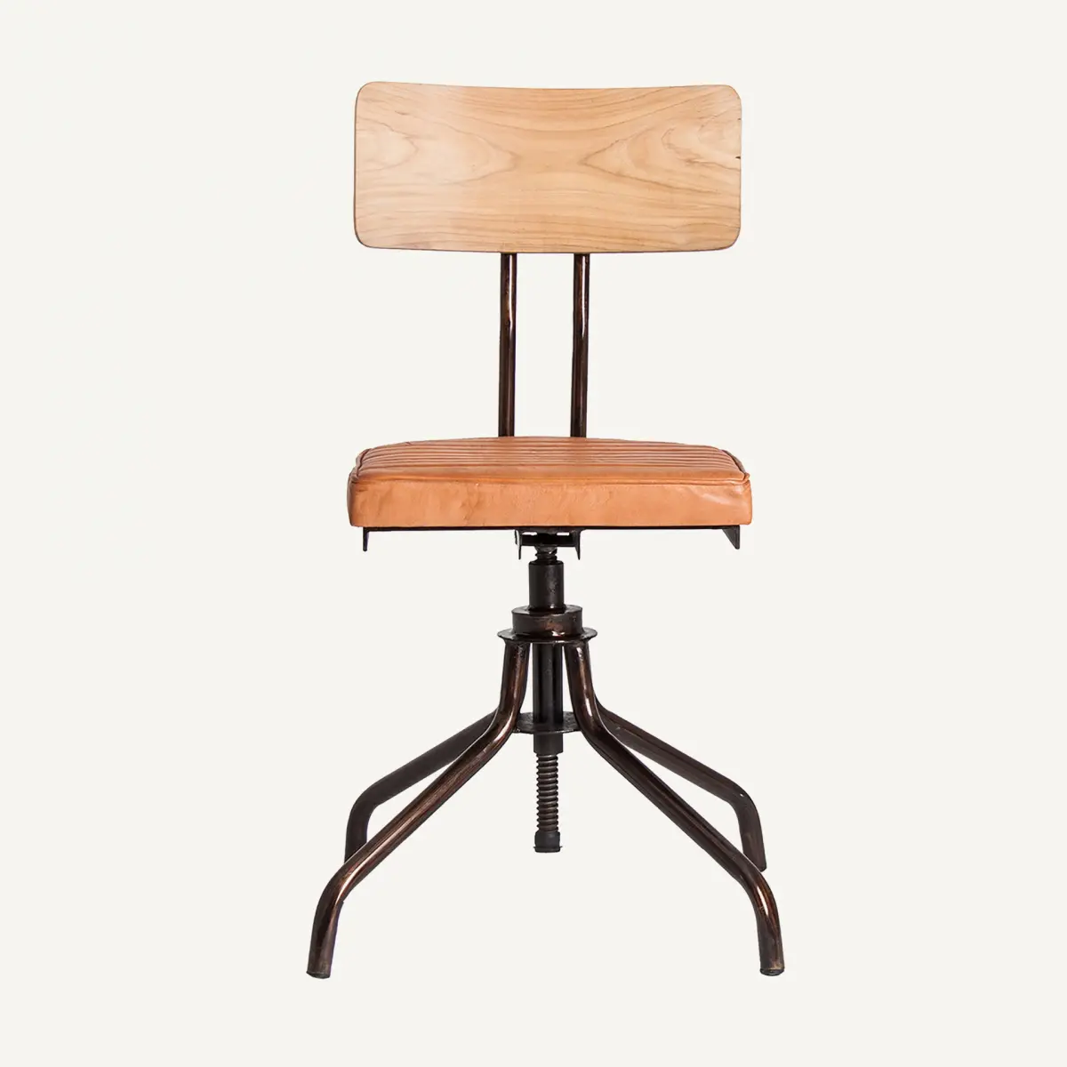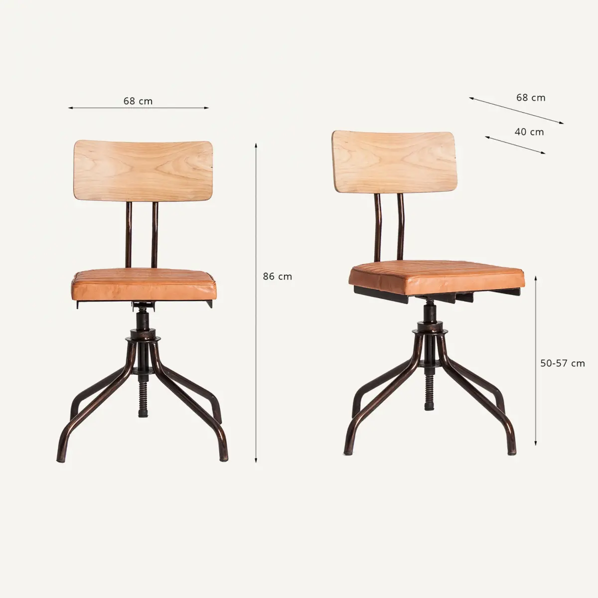 Fauteuil pivotant stryi Vical Home, couleur naturel, style vintage. Fabriqué en fer, combiné avec cuir et dm. Produit relevable.