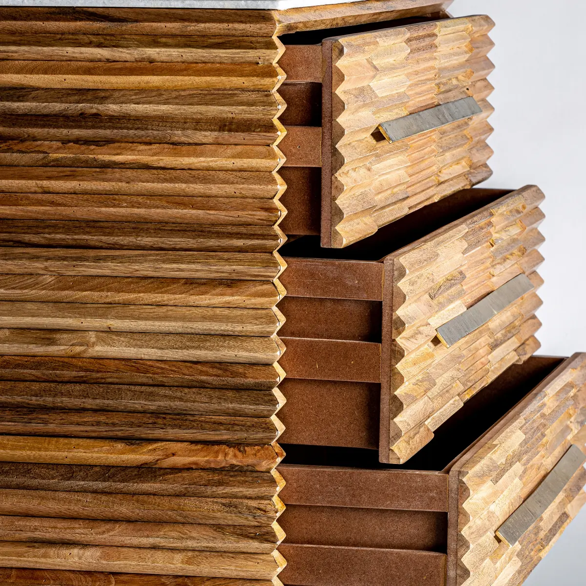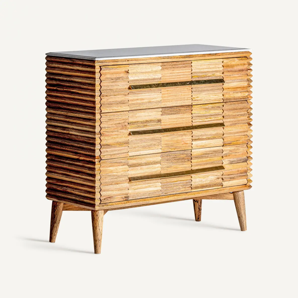 Commode Plissé wood Vical en bois de mangue et marbre L100