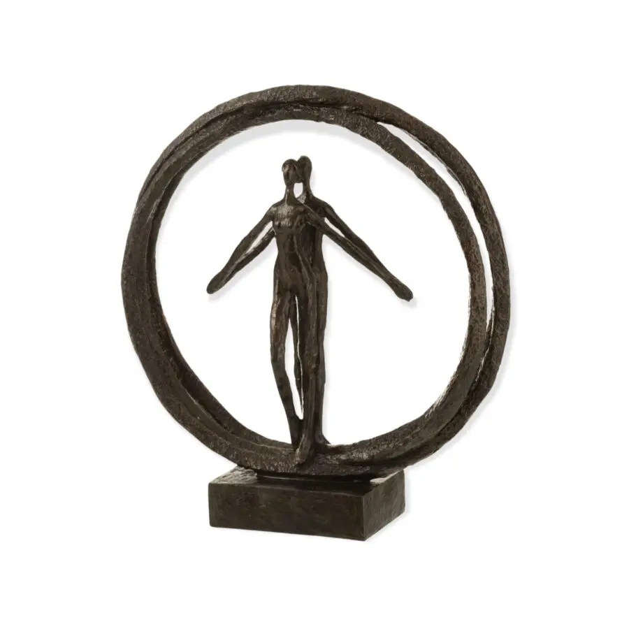 COUPLE DANS DOUBLE CERCLE RESINE MARRON FONCE