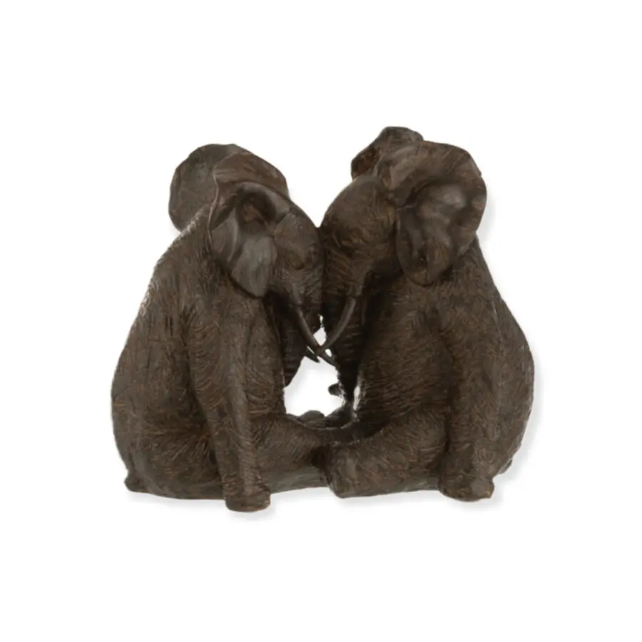 COUPLE ELEPHANT RESINE MARRON FONCE SMALL
