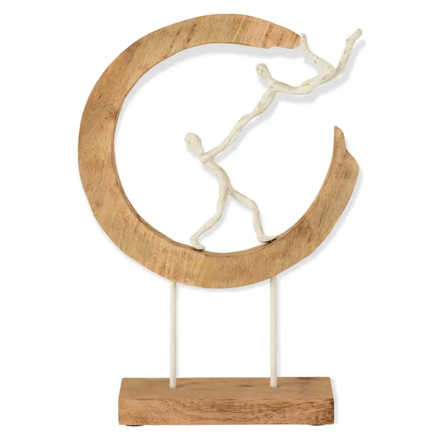 Couple demi lune en bois de manguier et aluminium naturel et blanc 33×48