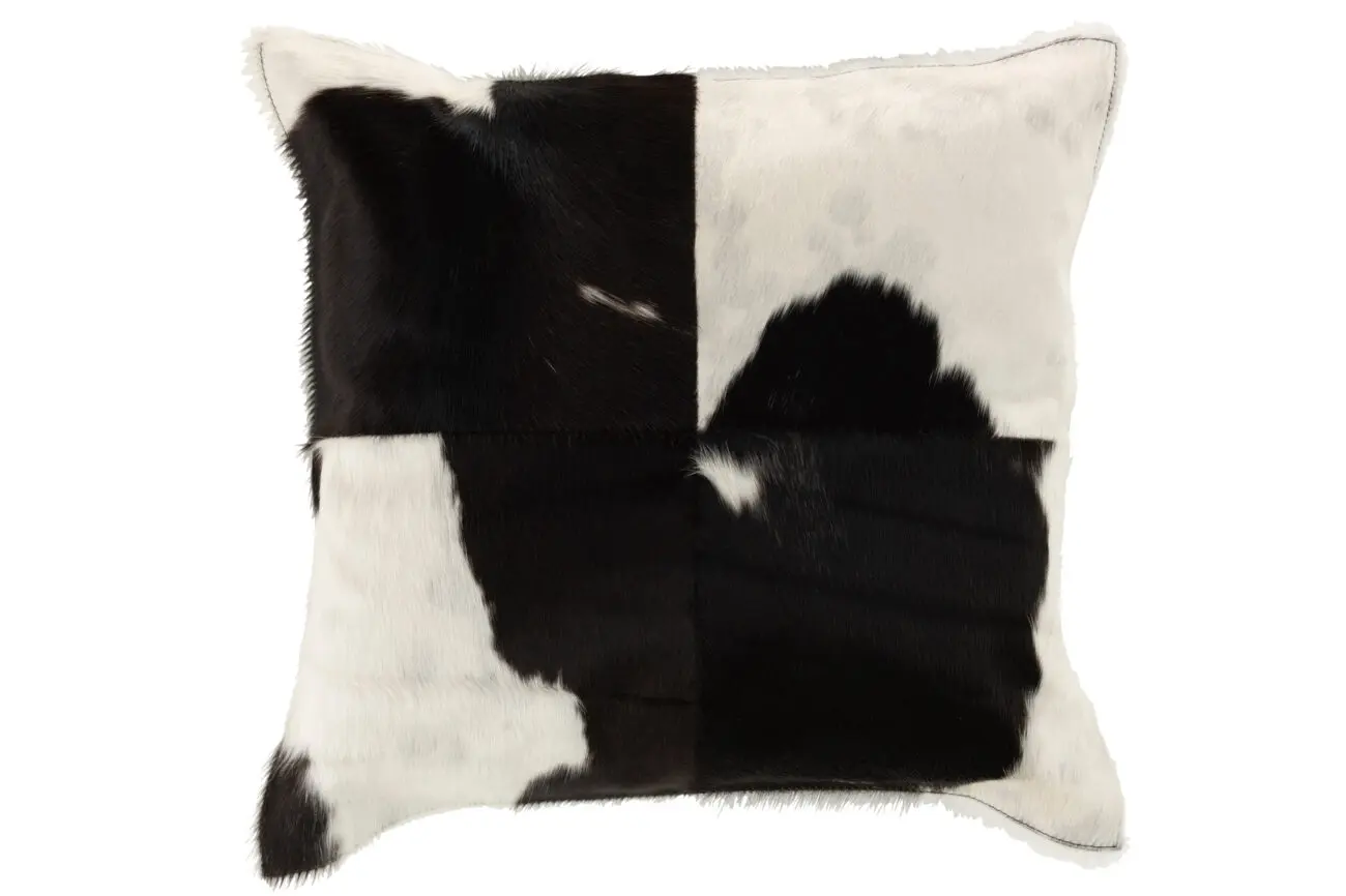 COUSSIN VACHE CARRE CUIR NOIR/BLANC