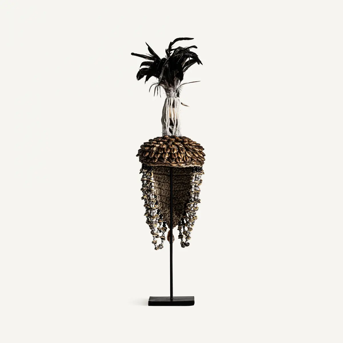 Figure décorative, couleur naturel, style ethnique. Fabriqué en fibre naturelle, combiné avec coquille.