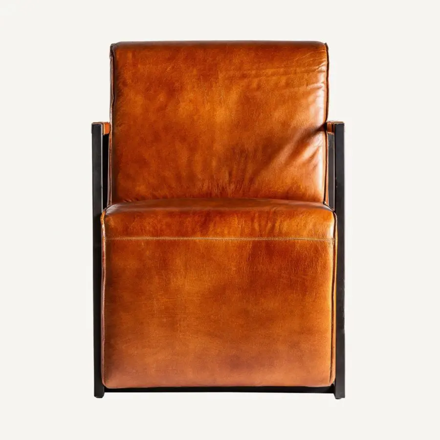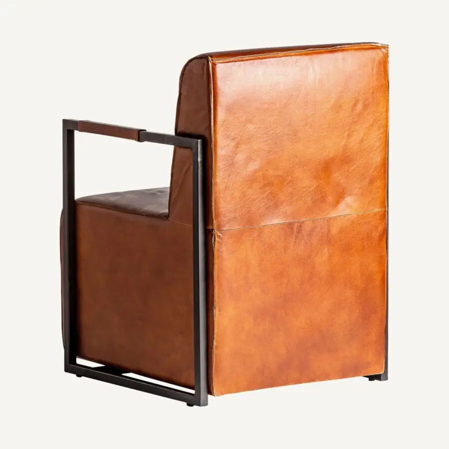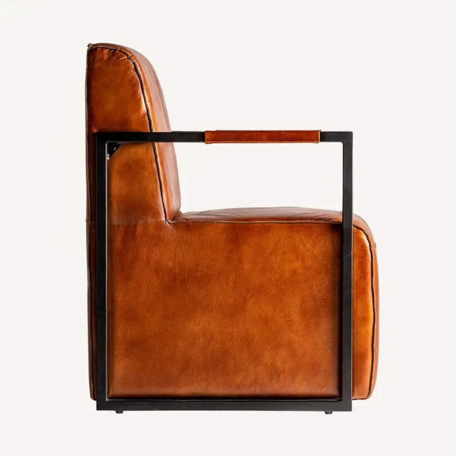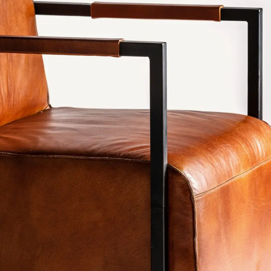 Fauteuil Bismark Vical style vintage en peau(cuir) et fer 68×87