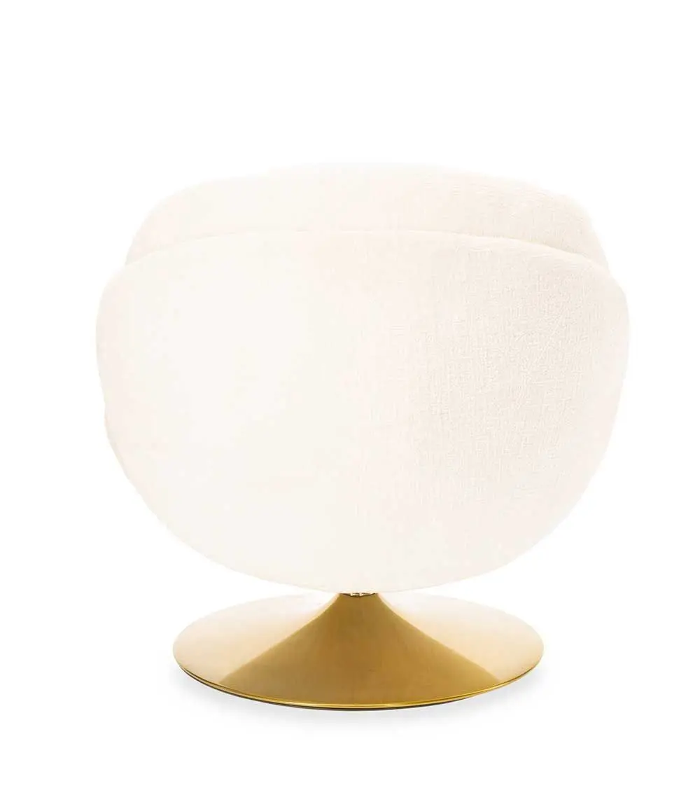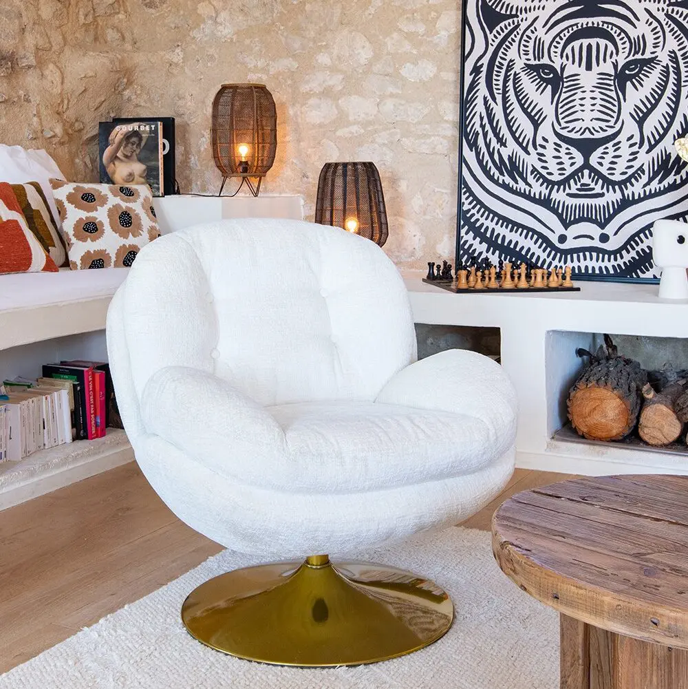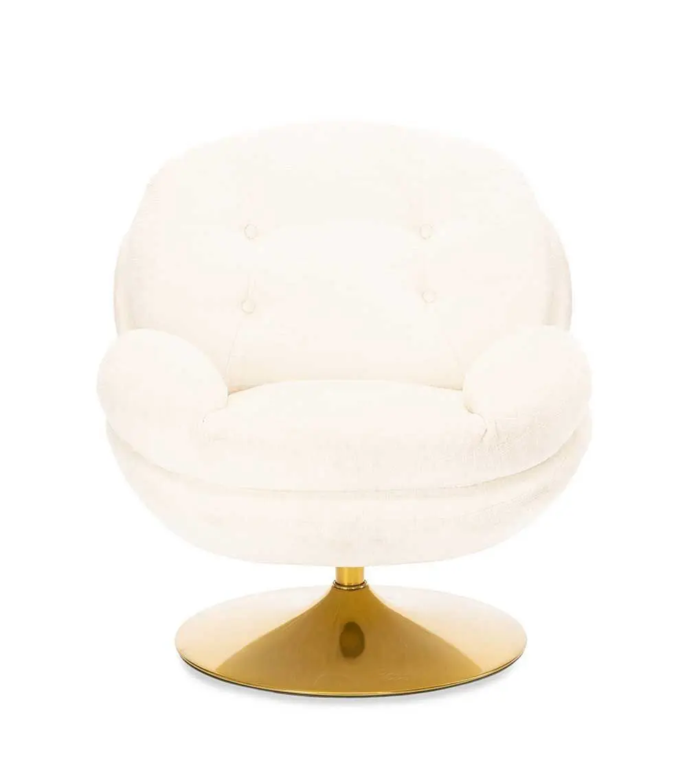 Ce fauteuil pivotant vous offre une liberté de mouvement incomparable, idéale pour votre salon, votre chambre ou votre bureau. Sa base en métal doré assure une stabilité parfaite et supporte un poids maximal de 140 kg, témoignant de sa robustesse exceptionnelle.