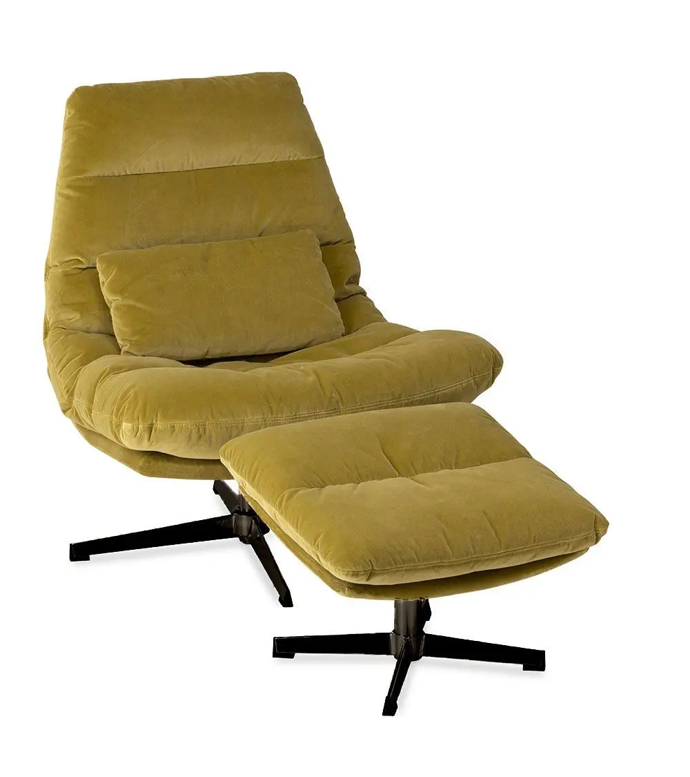 Fauteuil pivotant en velours ultra confortable. (Repose-pieds vendu séparément)