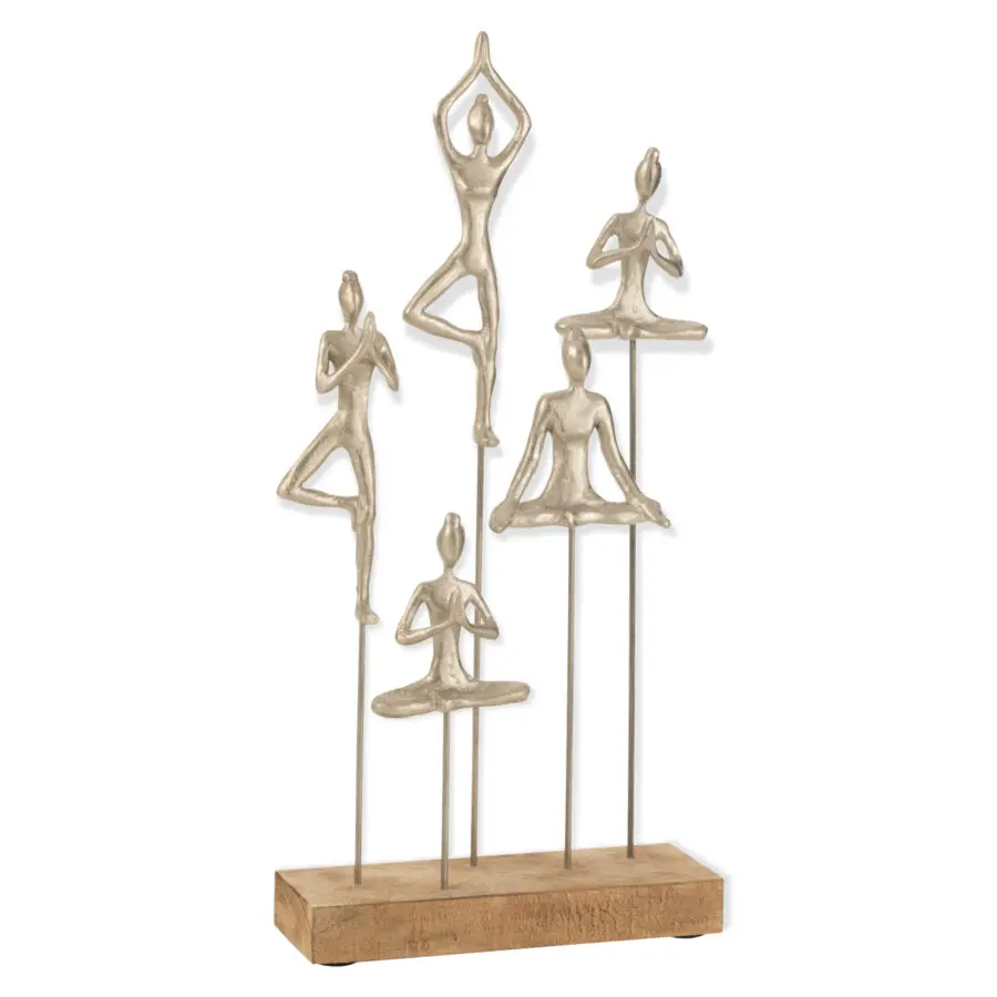 Femme yogi en bois et aluminium naturel et argent 26×52