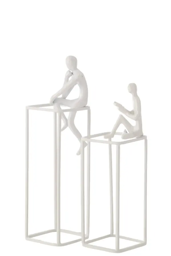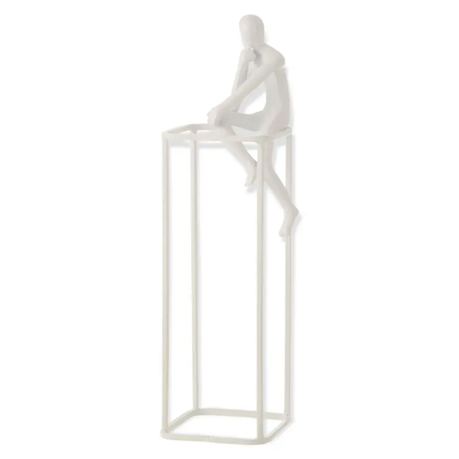 Figurine pensive sur cube en aluminium blanc 10×36