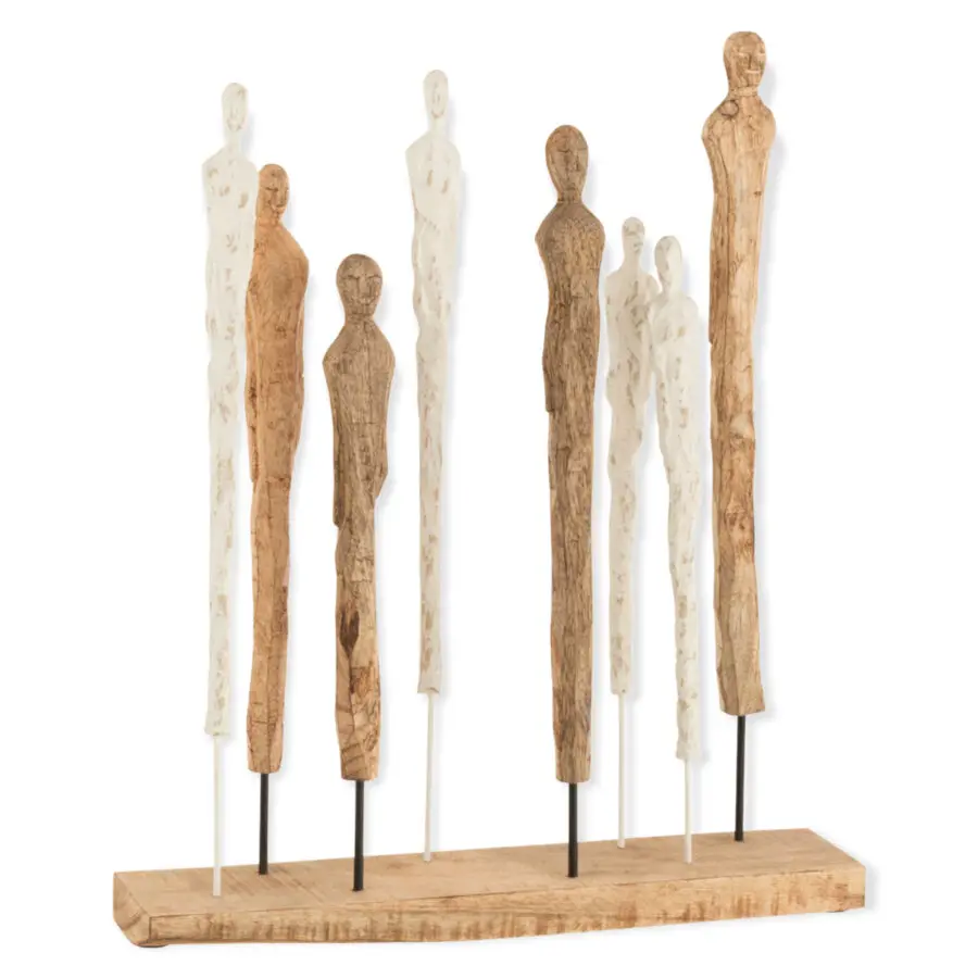 Statue 8 personnages en manguier et aluminium blanc naturel 51×57