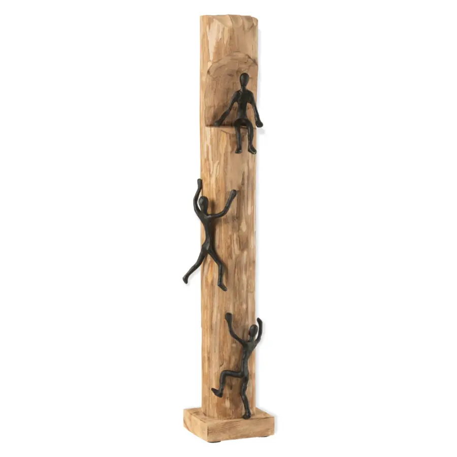 Figurines grimpantes en bois de manguier et aluminium noir 75×14