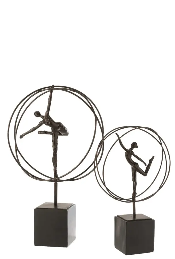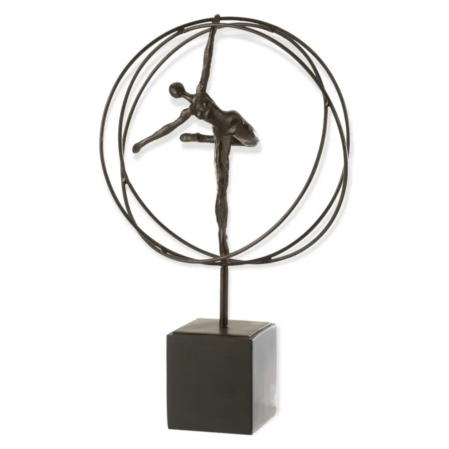 Statue gymnaste dans cercle en résine marron foncé 30×49