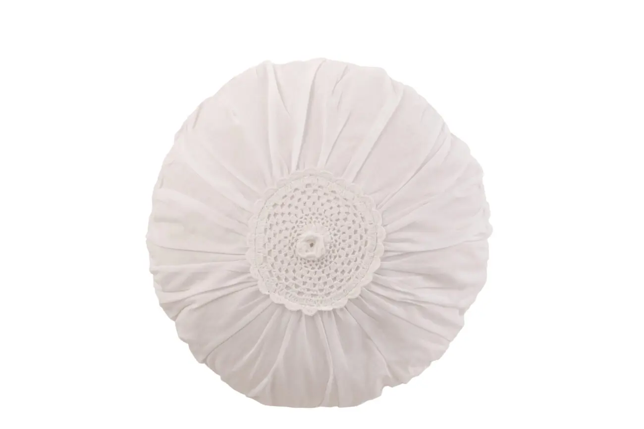 Coussin rond dentelles en coton blanc HELLY