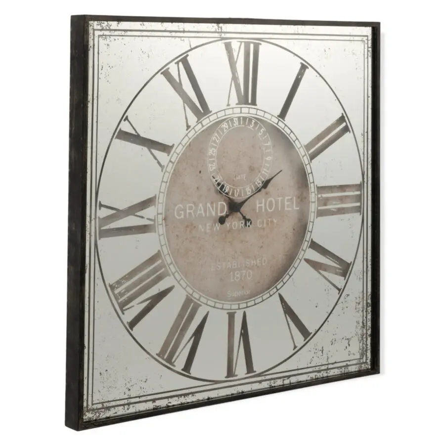HORLOGE CARREE HOTEL MIROIR GRIS