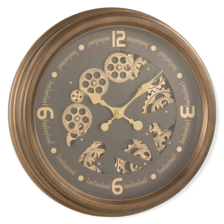 Horloge mécanisme apparent en métal et verre or D52