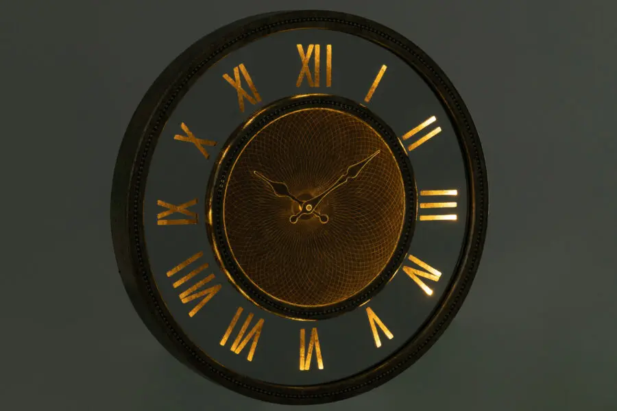 Horloge miroir chiffres romains en mdf antique or D47