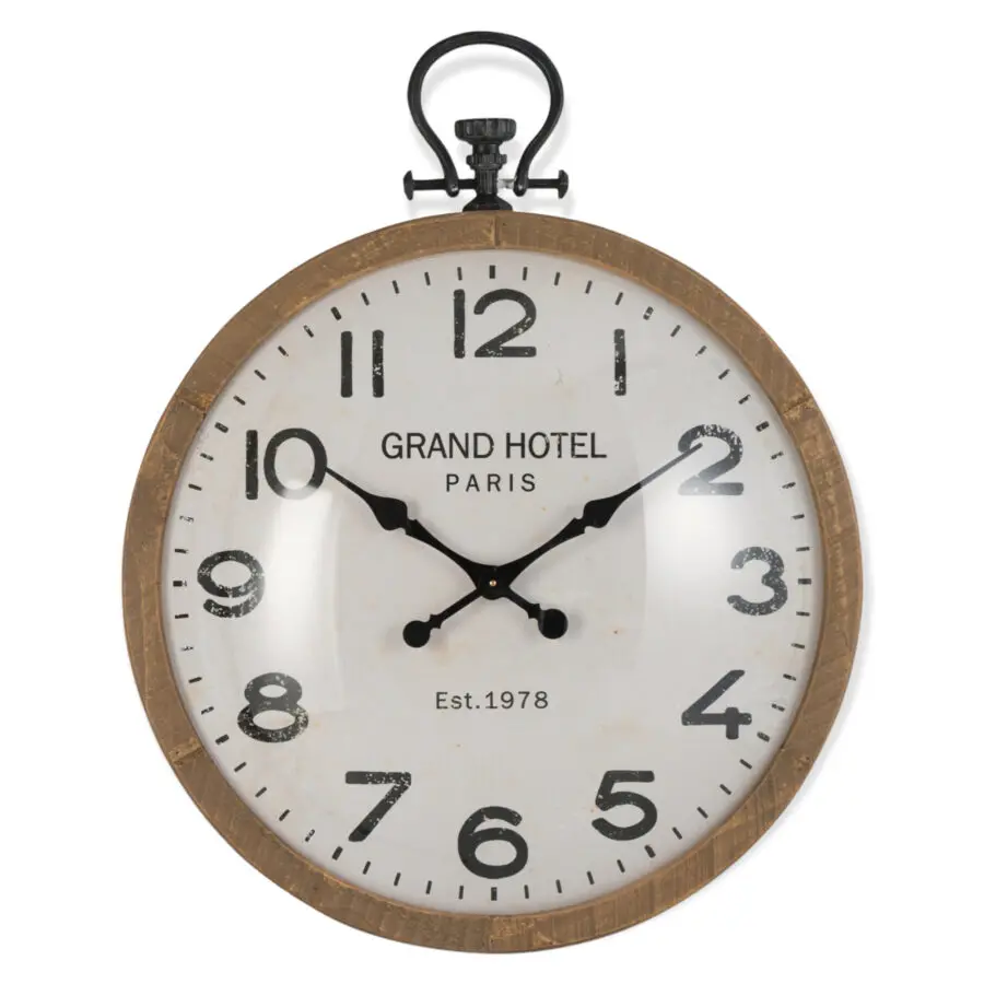 Horloge boule ronde en verre et bois naturel 89×107