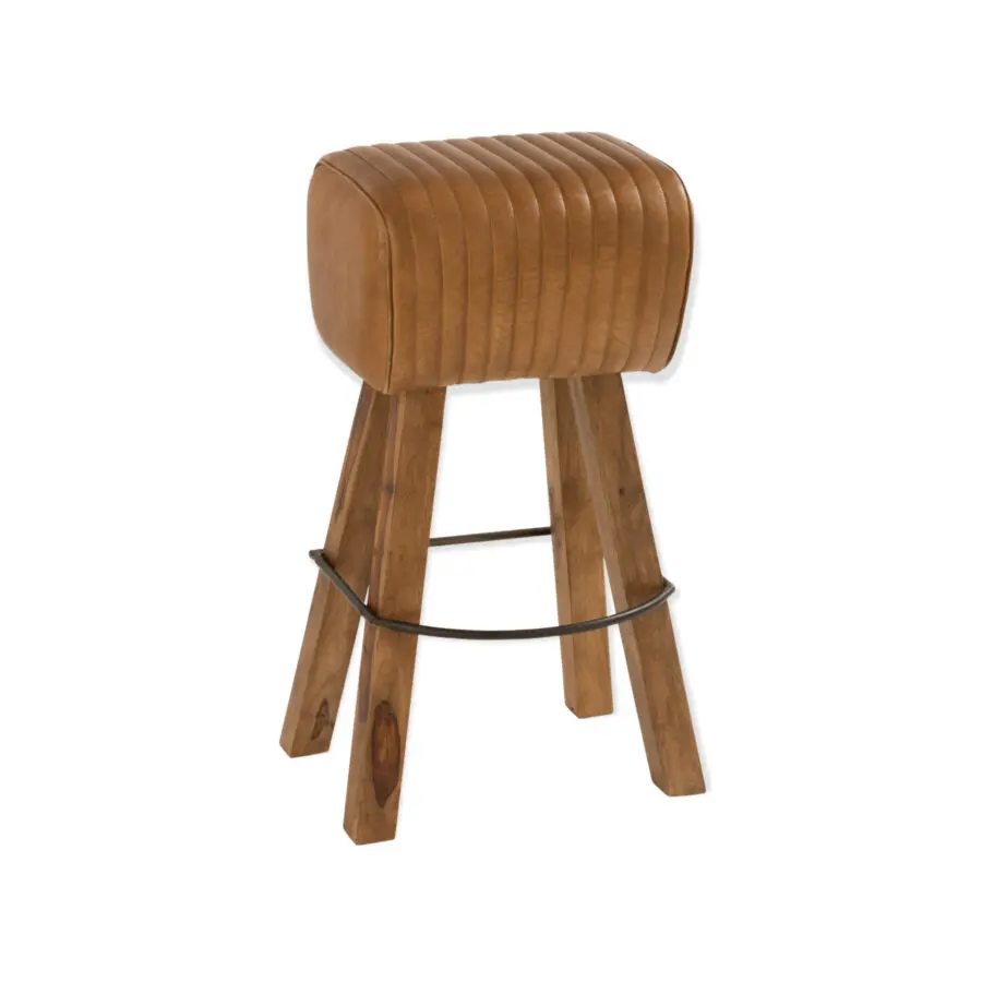 Tabouret gym Jimmy – Cuir/bois de manguier – Camel/naturely