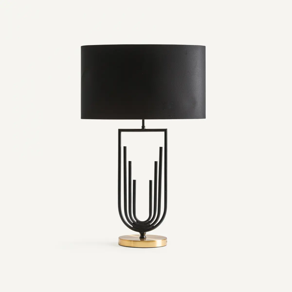 Lampe de salon, couleur noir/doré lisse, style oriental. Fabriqué en fer, combiné avec polyester.