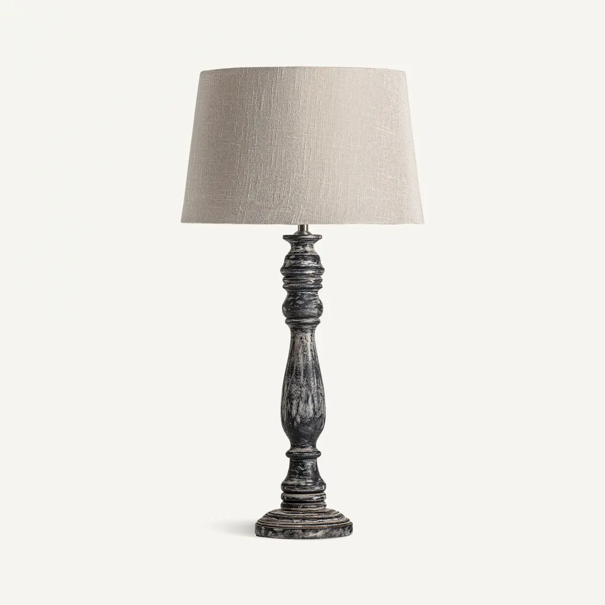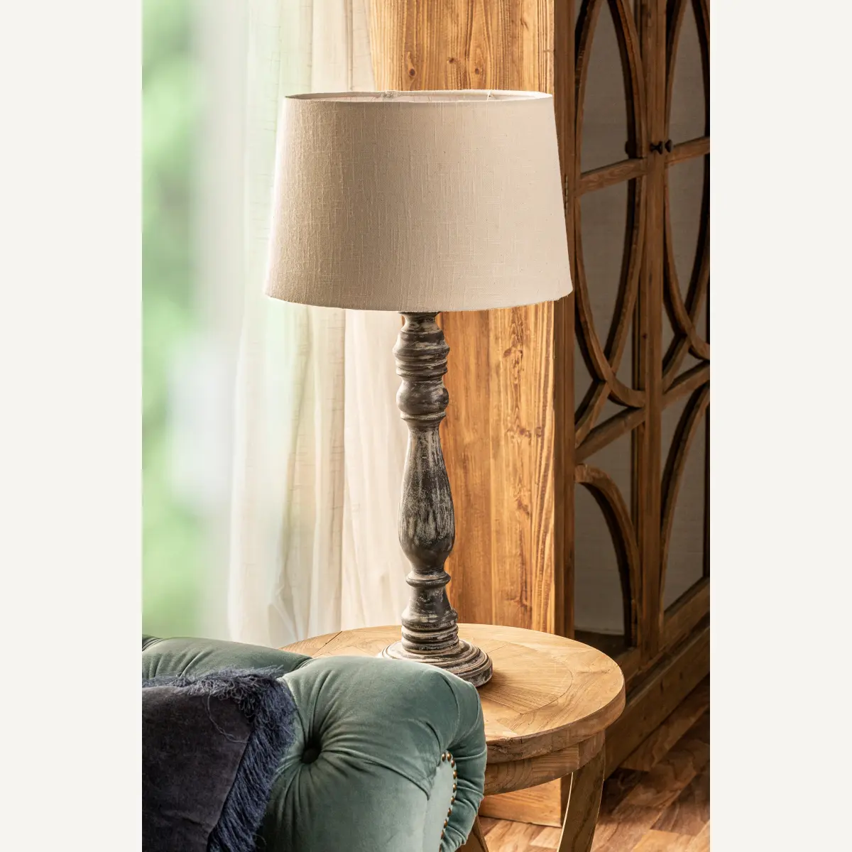Lampe de salon, couleur noir, style provençal. Fabriqué en bois de mangue, combiné avec coton.