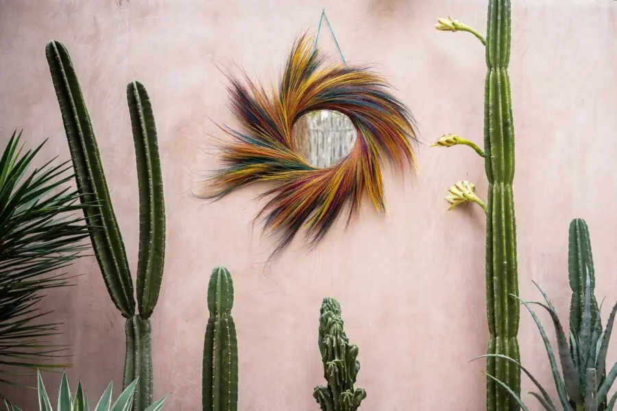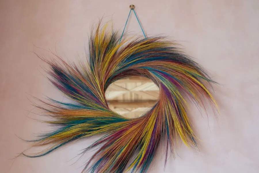 On est follement amoureux de ce miroir LOLLIPOP coloré en herbe.Il apporte une belle touche ethnique et bohème à votre intérieur.