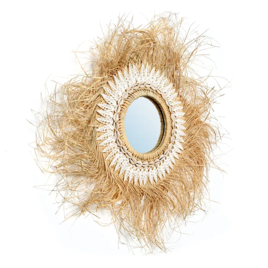 Ce magnifique miroir apporte une touche de texture côtière à votre intérieur. Il est composé de belles herbes entourant un centre de miroir. Plus que jamais tendance, il apporte une belle touche terreuse et bohème à votre intérieur. Un superbe look pour chaque pièce.