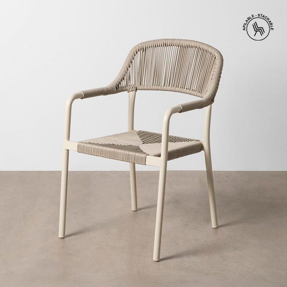Deux chaises de jardin empilables en aluminium et rotin coloris taupe au format 57 x 61 x 82 cm — le lot de 2 pour une terrasse au style naturel et épuré. L’aluminium léger et anti-corrosion et le tressage rotin taupe créent la chaise de jardin idéale pour les espaces extérieurs qui veulent le caractère artisanal naturel avec la durabilité du métal.