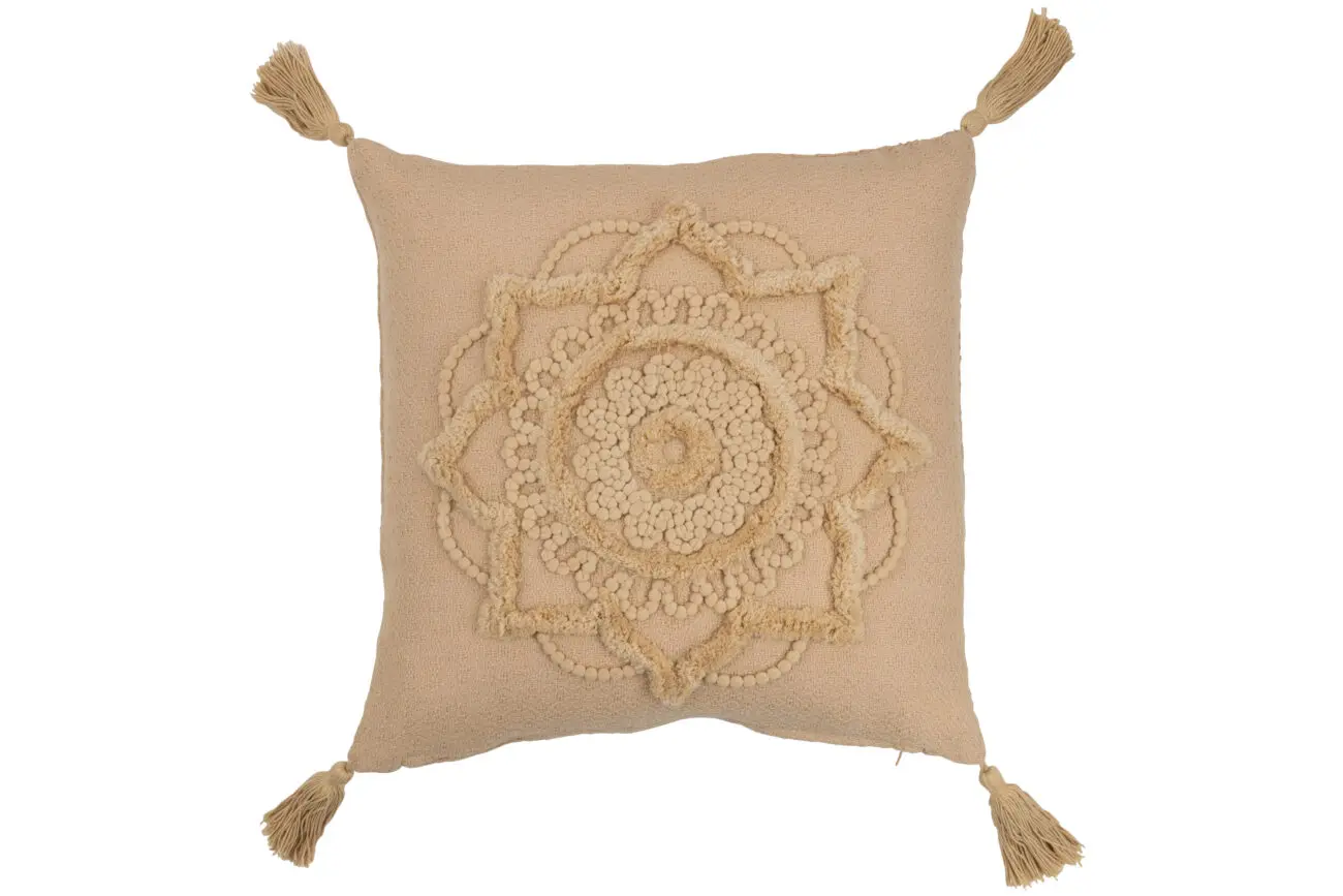 Coussin carré fleur floches en polyester beige MANDIE