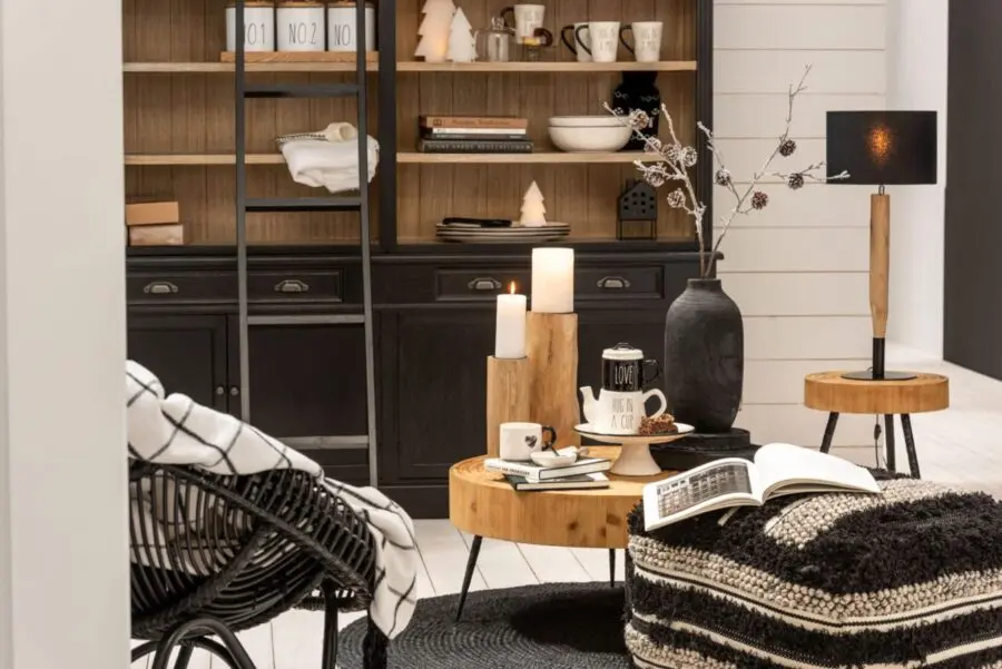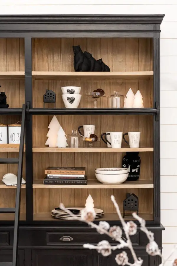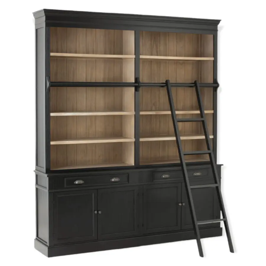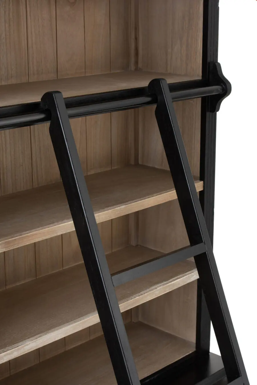 Bibliothèque+échelle Manili – Bois – Noir/naturel