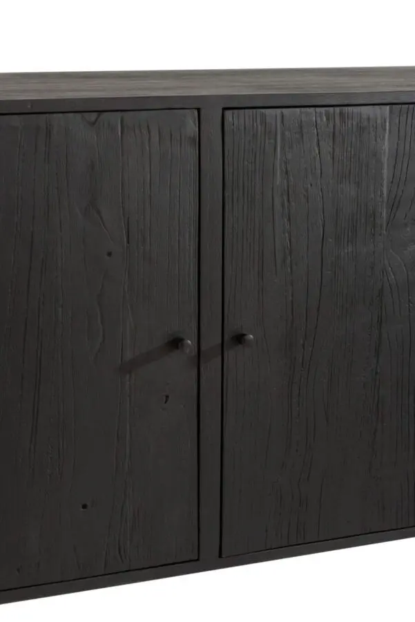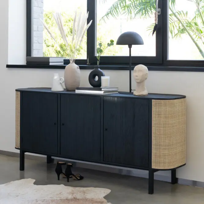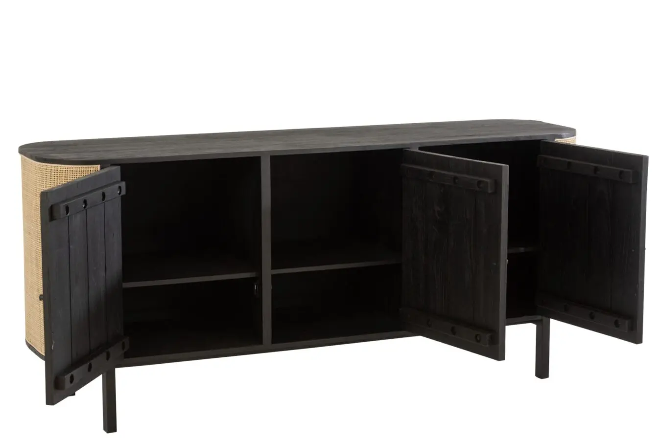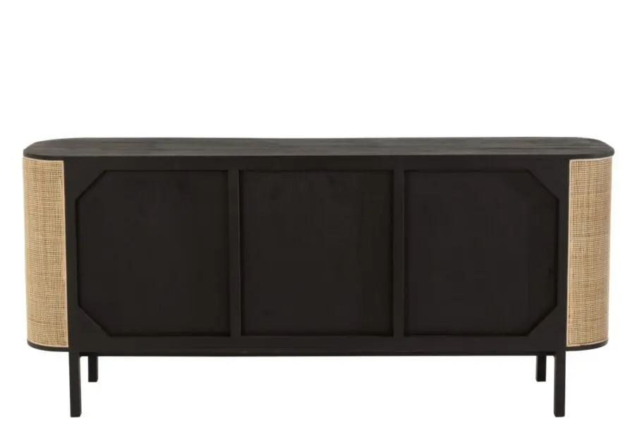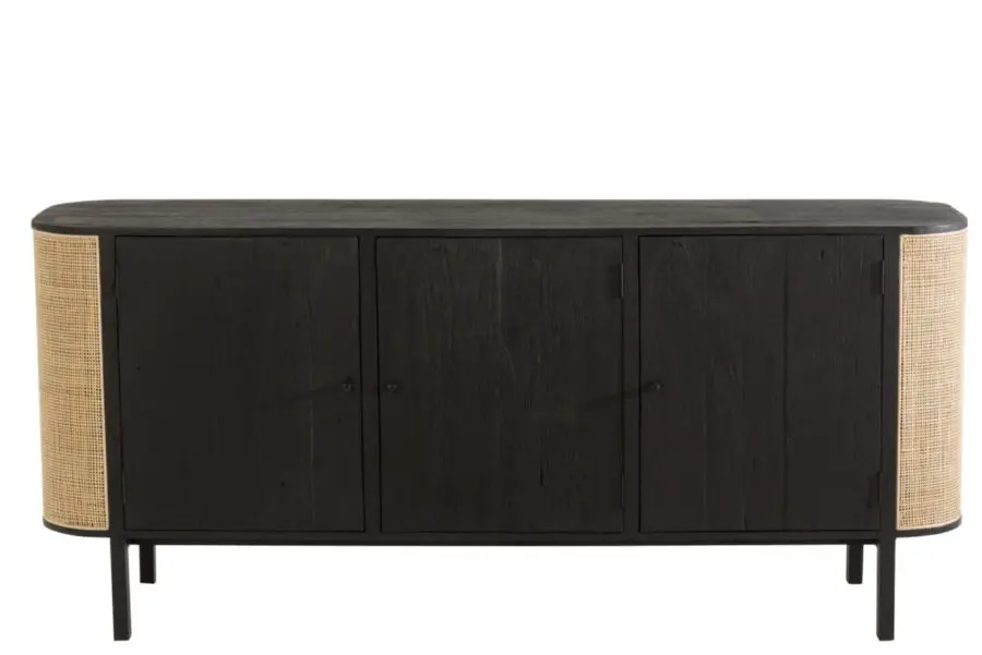 Buffet 3 portes Molly – Bois exotique/rotin – Noir/naturel