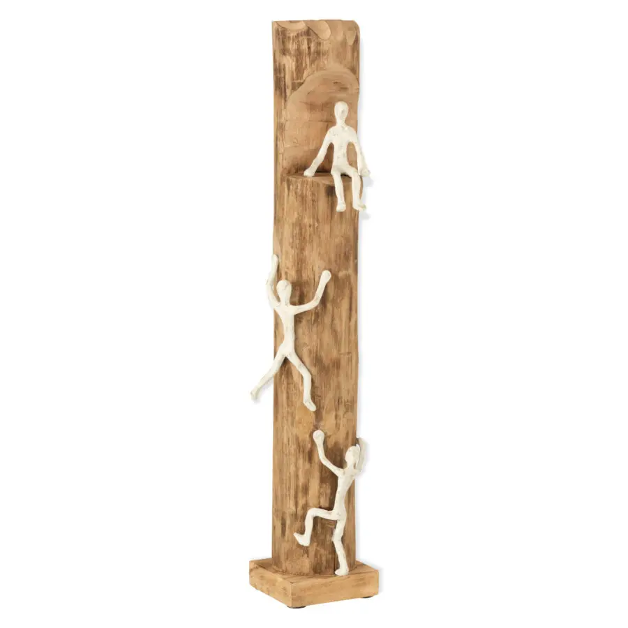 Statue grimpeurs en bois de manguier et aluminium naturel argent 16×73