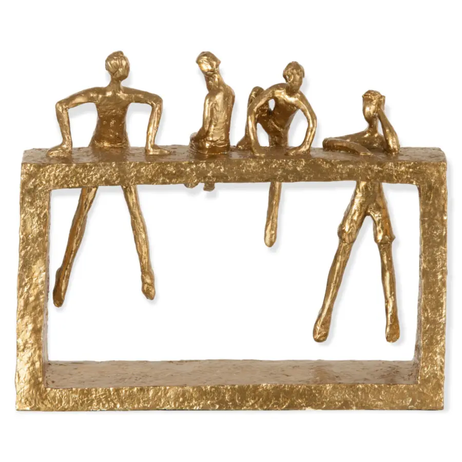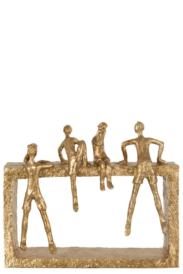 Statue personnage grimpant en résine or 29×25