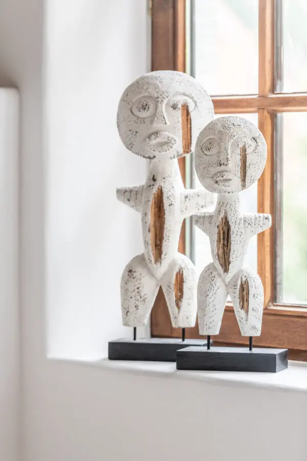 Personnage primitif en bois blanc 14×40