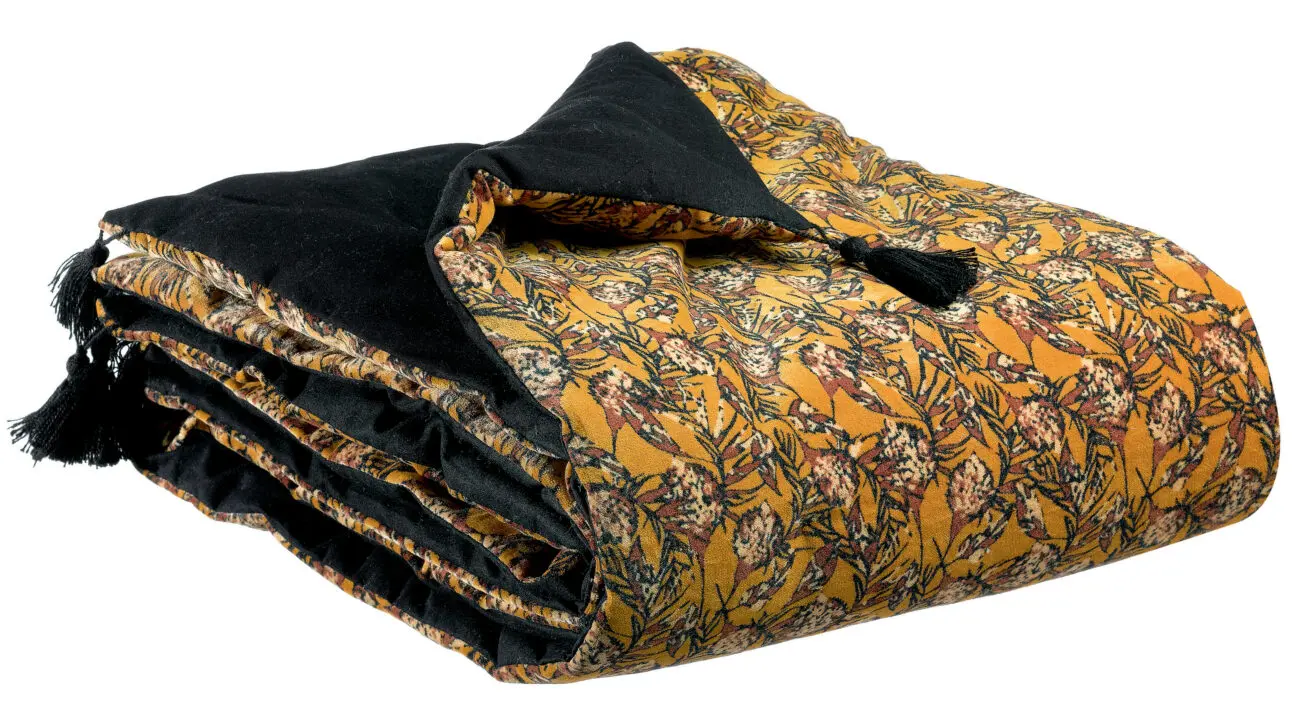 Invitation à la détente, ce plaid en velours de coton garni en polyester vous séduira par sa douceur et son moelleux inestimable. Son motif floral et sa finition pompons donneront une atmosphère bohème relaxante à votre intérieur. Découvrez également l’édredon et le coussin de la même gamme pour une décoration harmonieuse.