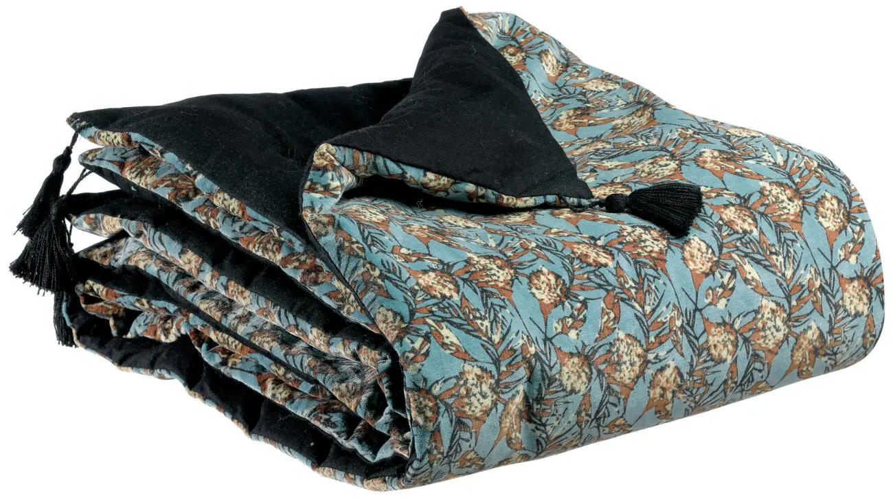 Invitation à la détente, ce plaid en velours de coton garni en polyester vous séduira par sa douceur et son moelleux inestimable. Son motif floral et sa finition pompons donneront une atmosphère bohème relaxante à votre intérieur. Découvrez également l’édredon et le coussin de la même gamme pour une décoration harmonieuse.