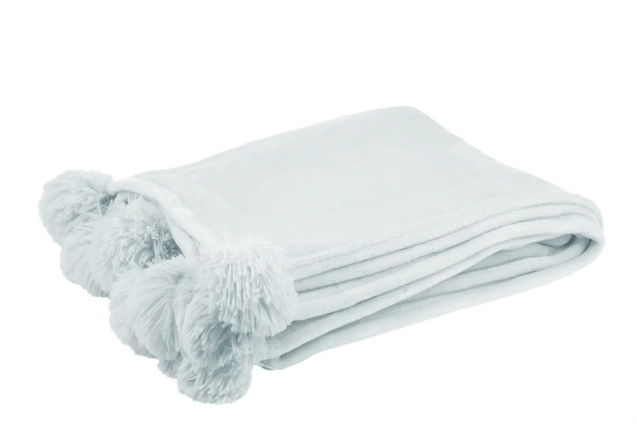 PLAID POMPON POLYESTER BLEU CLAIR