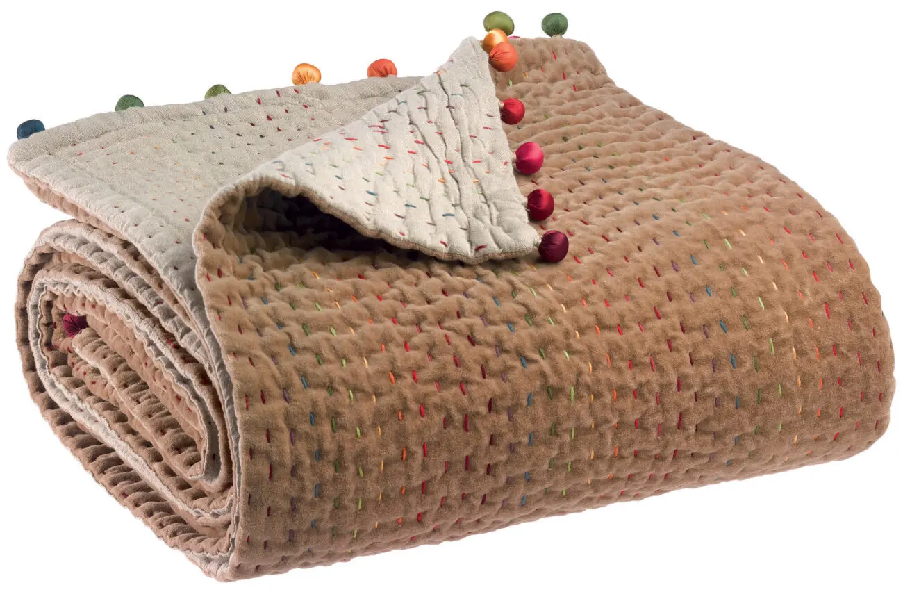 Ce plaid de la gamme emblématique Gastounet, en coton et aux finitions en pompons satinés et colorés habillera votre intérieur avec élégance et charme. Grâce à la subtile association entre un plaid uni aux surpiqures colorés et ses adorables pompons, vous pourrez facilement associer ce plaid à d’autres produits Vivaraise. Lavable jusqu’à 30°C en machine, il conservera longuement sa douceur et la vivacité de ses coloris malgré une utilisation quotidienne.
