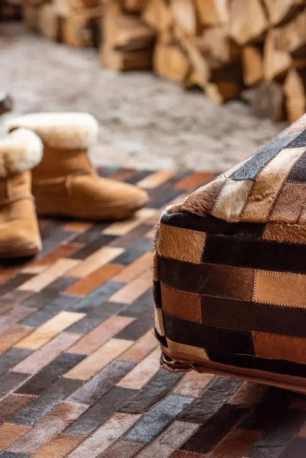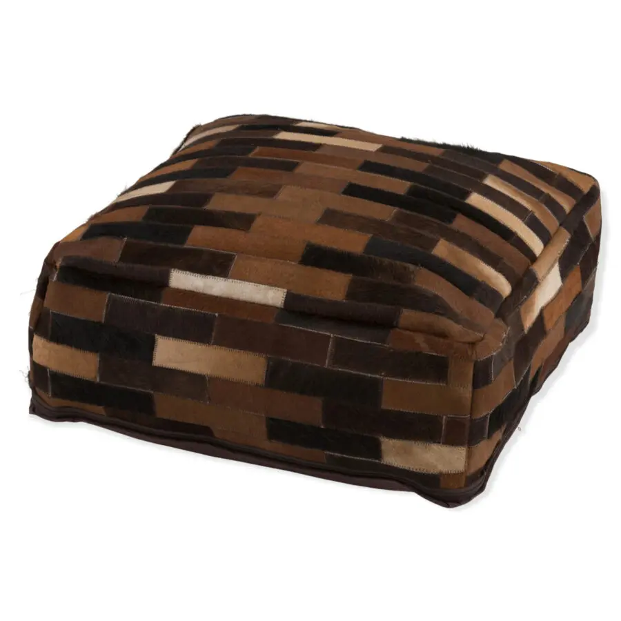 Pouf chalet en cuir marron 60x60x20
